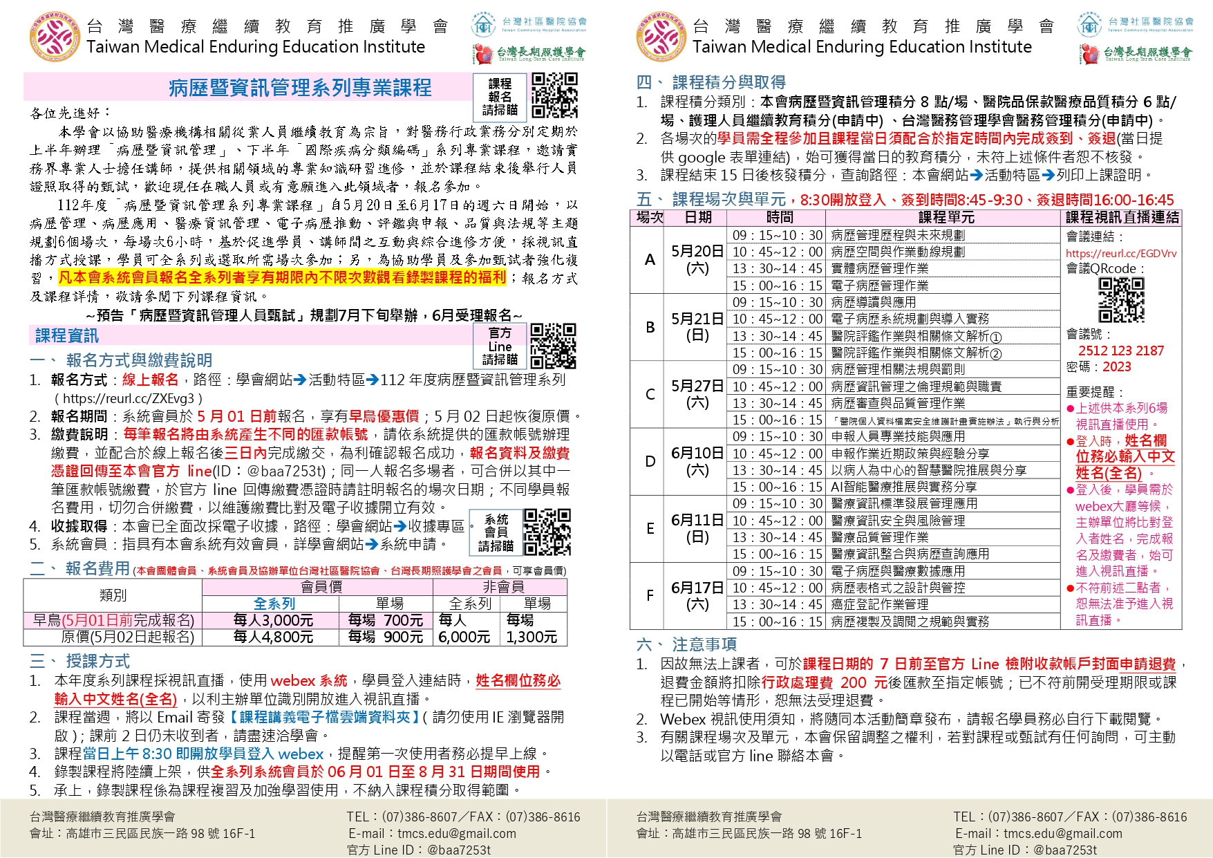112年度病歷暨資訊管理系列專業課程已開放報名